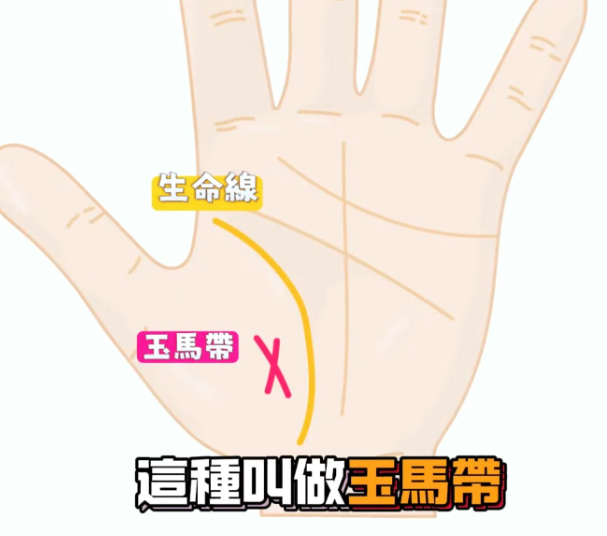- 如果生命線的內側,出現一個小小的交叉紋,這被稱為 「玉馬帶」。