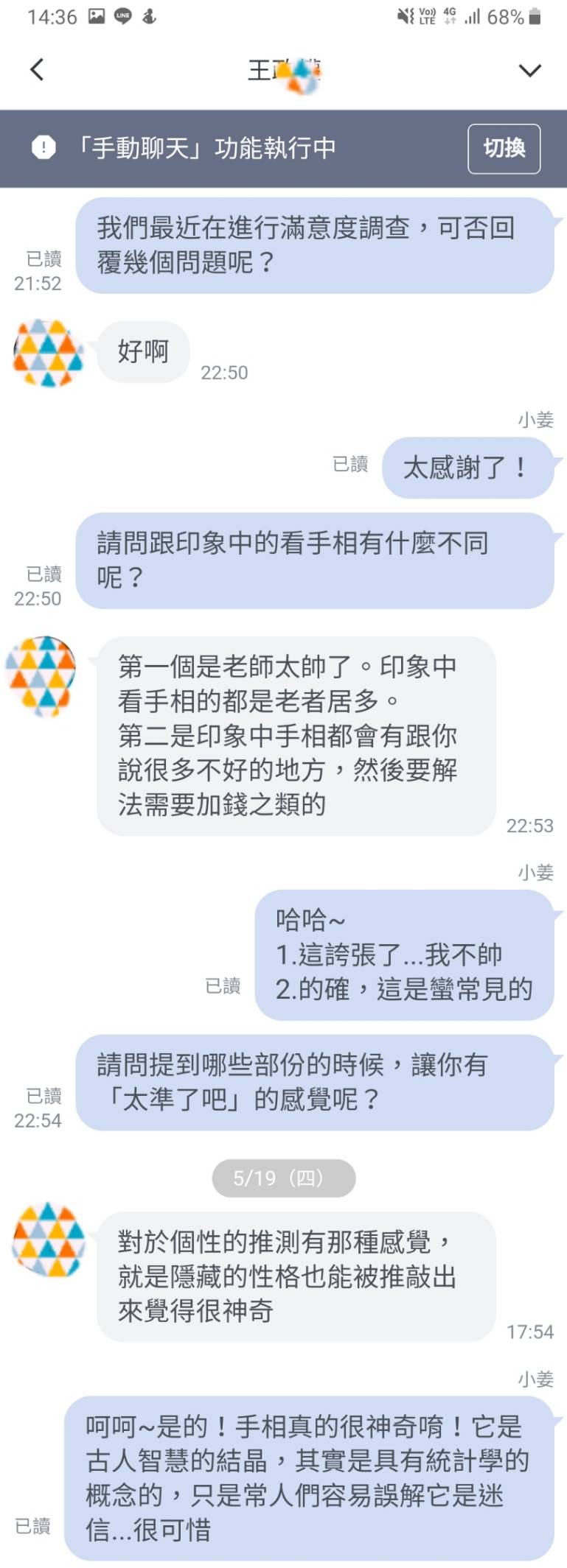 自我的醒悟及行動力才是可能改變自己人生的關鍵 看完手相後,我對命運有了更深的體悟。這次的經歷讓我意識到,命運的指引或懇求能讓人警惕,但若只是將它當作宿命,選擇消極接受,那麼人生也只能停滯不前。如果你不想讓命運被行動地推著走,我就必須更驍極地掌控自己的選擇。手相或許像一面鏡子,讓我看到某些的可能性,但最終,自我的醒悟及行動力才是可能改變自己人生的關鍵。