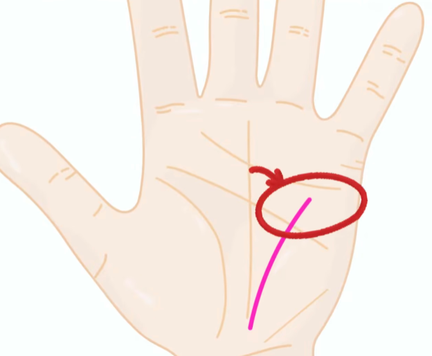 位置:通常從手掌底部往上竄,延伸到火星丘(手掌小指下方靠近手掌邊緣的位置)