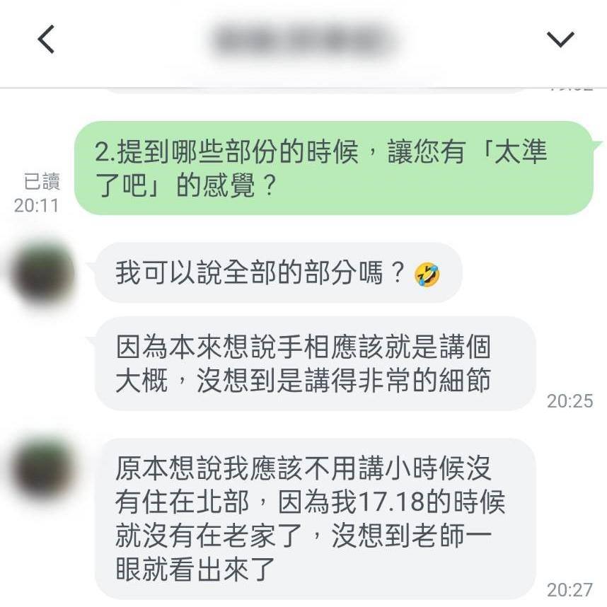 武先生原本以為,看手相就是泛泛而談的大方向,沒想到這次的服務竟然細緻到每個環節都能解釋得非常具體,而且還能精準指出過去與現在的關鍵細節,讓他大為驚訝。