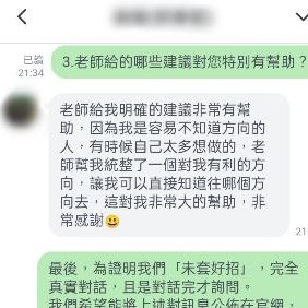 過程中,小姜老師對於武先生的性格與人生方向,給予非常明確的指引,沒有模糊帶過,而是直接整理出對他最有利的方向與建議。