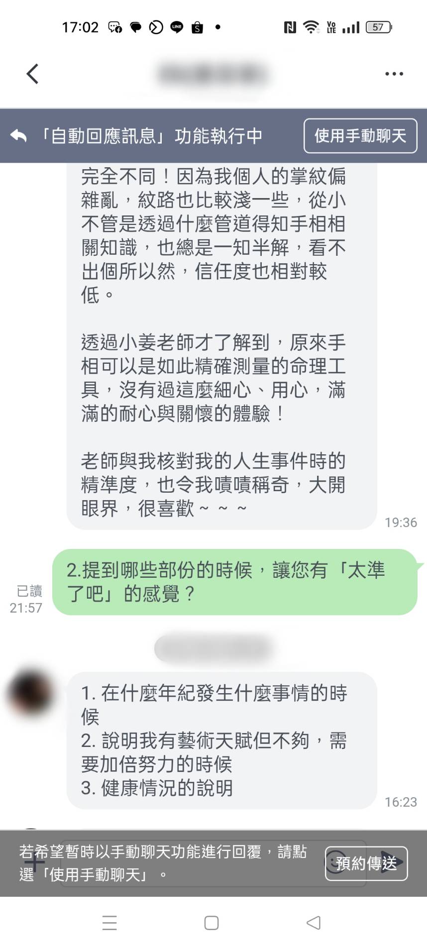 因為天生掌紋偏雜亂、紋路較淺,過去不論透過什麼管道算命,得到的結果總是「一知半解」,老師們似乎都說不出個所以然,這也讓他對手相的信任度始終不高。